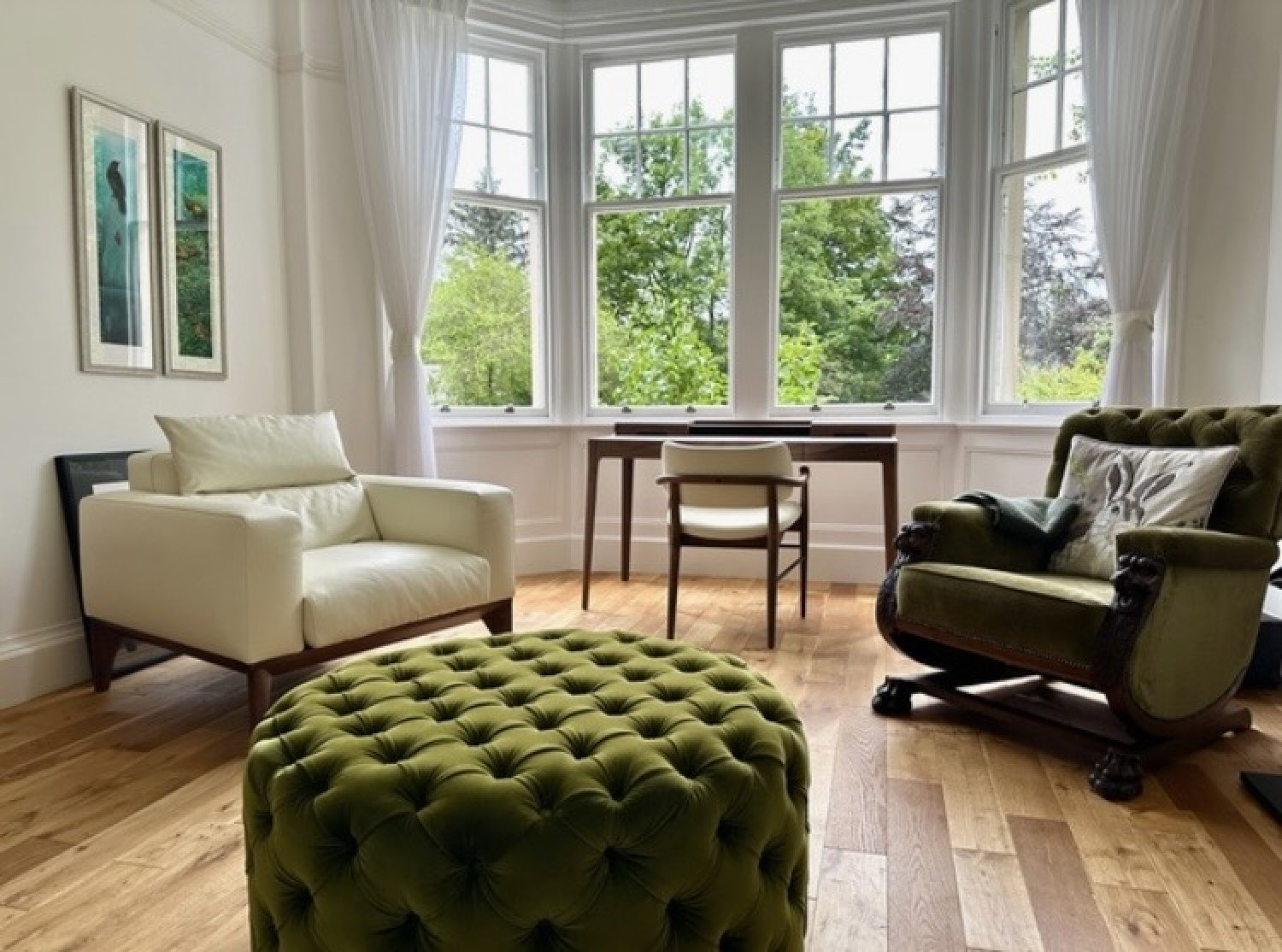 New oak flooring was laid throughout and a stove took pride of place in the light-filled sitting room. Furniture was sourced from Italy and I added a pop of colour with the upholstery.