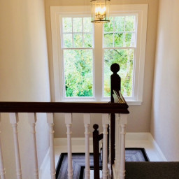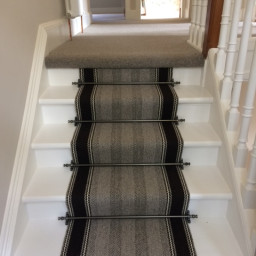 The staircase was painted white to allow the bespoke stair runner to take pride of place in the entrance hallway.